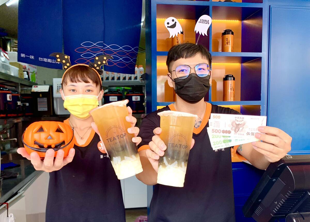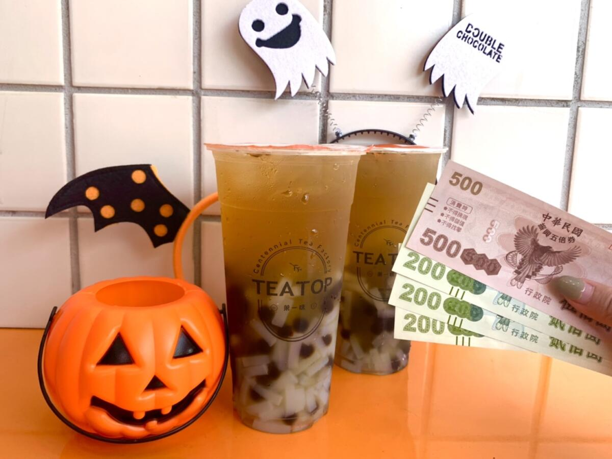 為了回饋大家,「TEA TOP第一味」將在萬聖節的10/30-10/31兩天推出限時優惠,只要在活動期間到店對店員喊出「不給糖就搗蛋」,