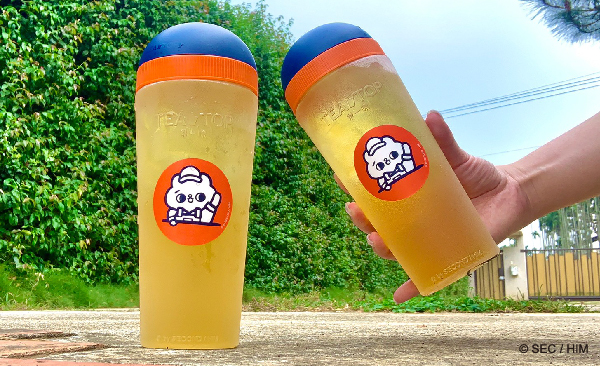 第一瓶瓶身有獨家爽爽貓立體浮雕設計,霧面瓶身搭配藍橘撞色杯蓋和貼紙,既可愛又不失質感,隨身帶著走也很潮。