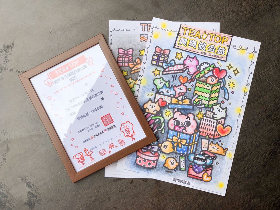 TEA TOP第一味「爽爽做公益」著色畫比賽得獎名單公開!孩子們用心創作凝結無限愛心