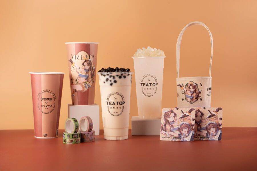 值得一提的是,TEA TOP還和傳說對決一同在板橋民權和南港昆陽店 推出兩間主題飲料店,
