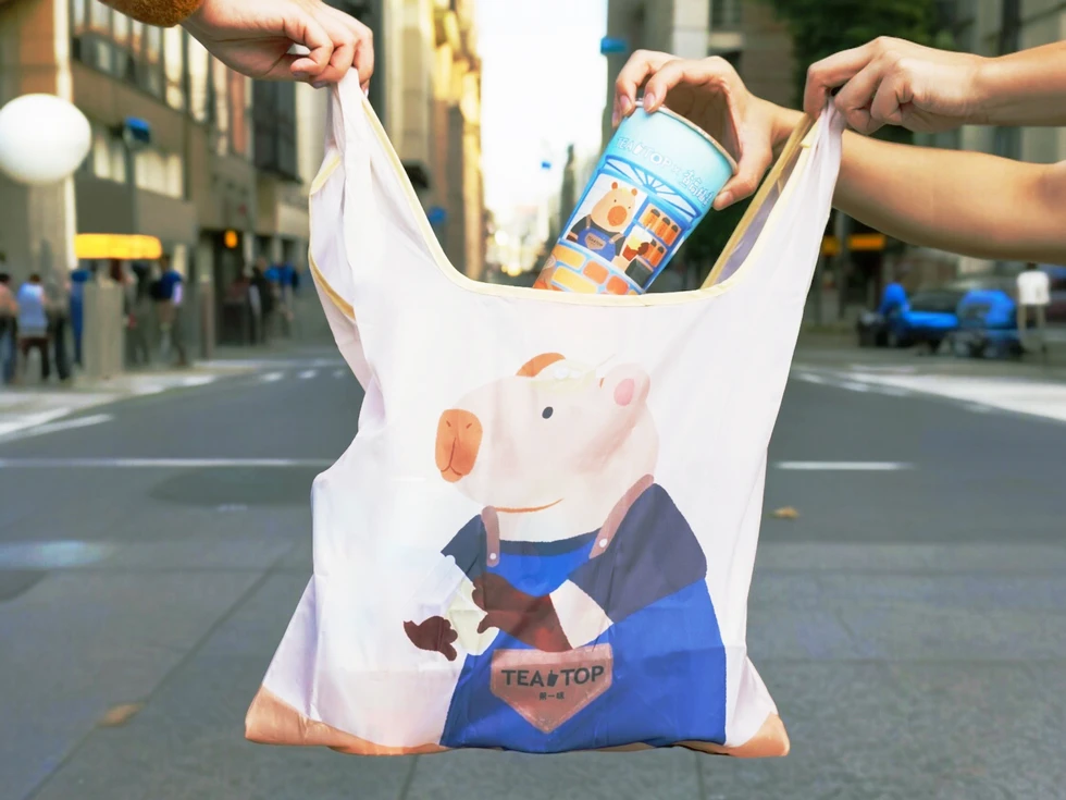 7/4起,凡購買巨峰葡萄青(含茶凍),可享加購價99元「可愛水豚君環保提袋」。