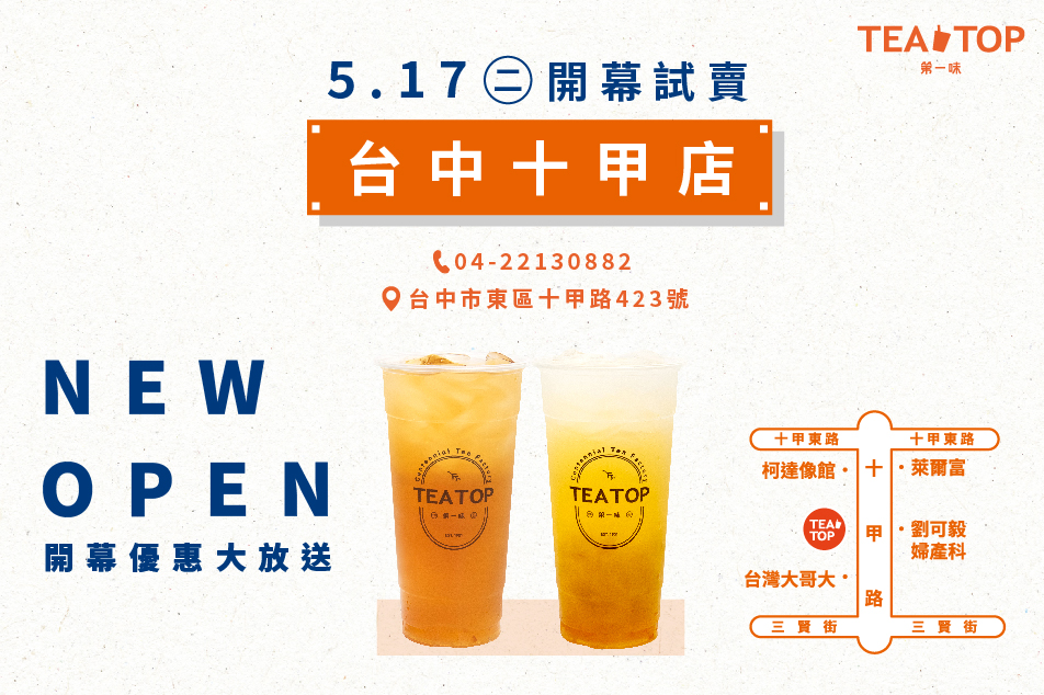TEA TOP第一味台中十甲店盛大開幕囉!!