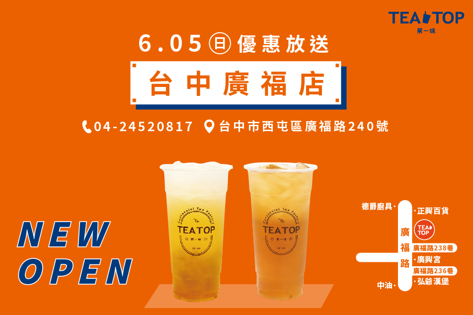 TEA TOP第一味台中廣福店盛大開幕囉!!
