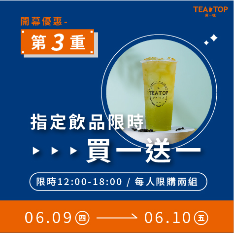 指定飲品限時買一送一/限時12:00-18:00、每人限購兩組