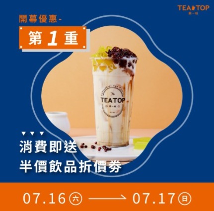 消費即送半價飲品折價券/使用期限7/23-8/31、限大杯、來店購買