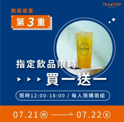 指定飲品限時買一送一/限時12:00-18:00、每人限2組、限大杯、同品項、來店購買