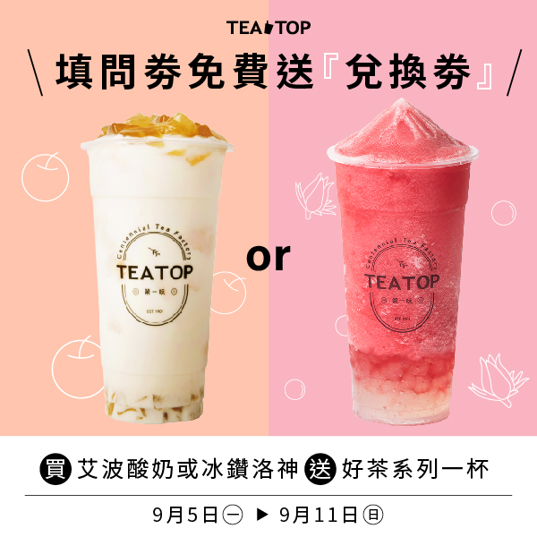▸ 活動獎項:「買大杯艾波酸奶or冰鑽洛神,送大杯好茶系列乙杯」電子劵