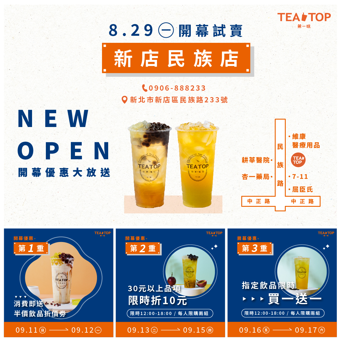TEA TOP第一味新店民族店8/29盛大開幕囉!!