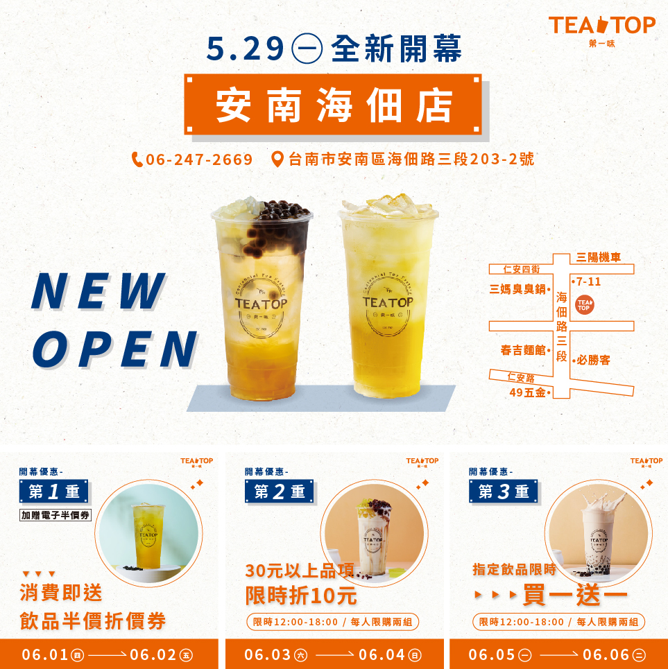 TEA TOP第一味安南海佃店 𝟱/𝟮𝟵(一) 試營運;𝟲/𝟮(五)正式開幕!!
