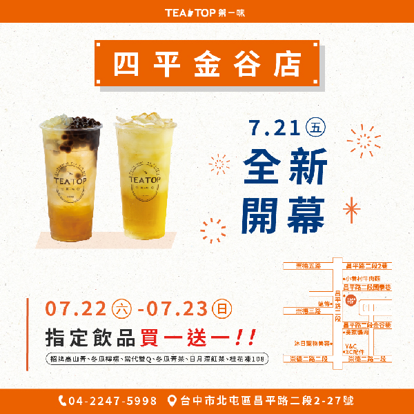 𝗧𝗘𝗔 𝗧𝗢𝗣四平店長在台中昌平路開新店囉!