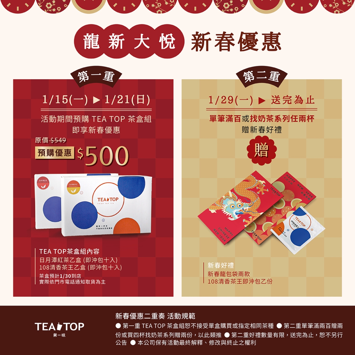 即贈新春龍包袋與108清香茶王即沖包(各1份)