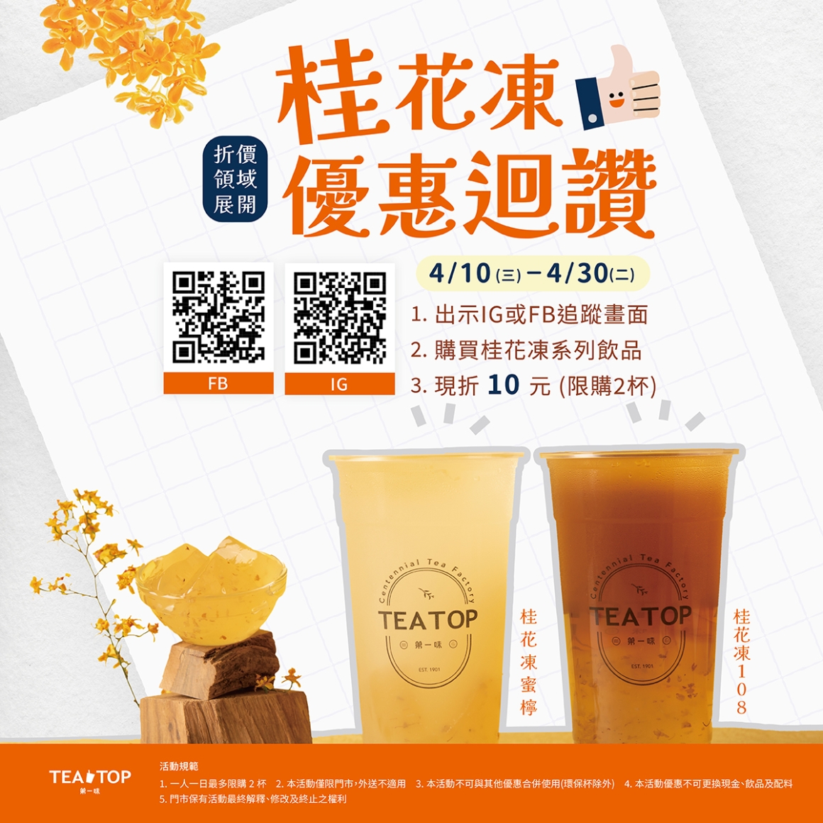 1.出示追蹤按讚 #TEATOP IG 或 FB 粉專畫面