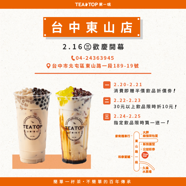 TEA TOP第一味台中東山店盛大開幕囉!!