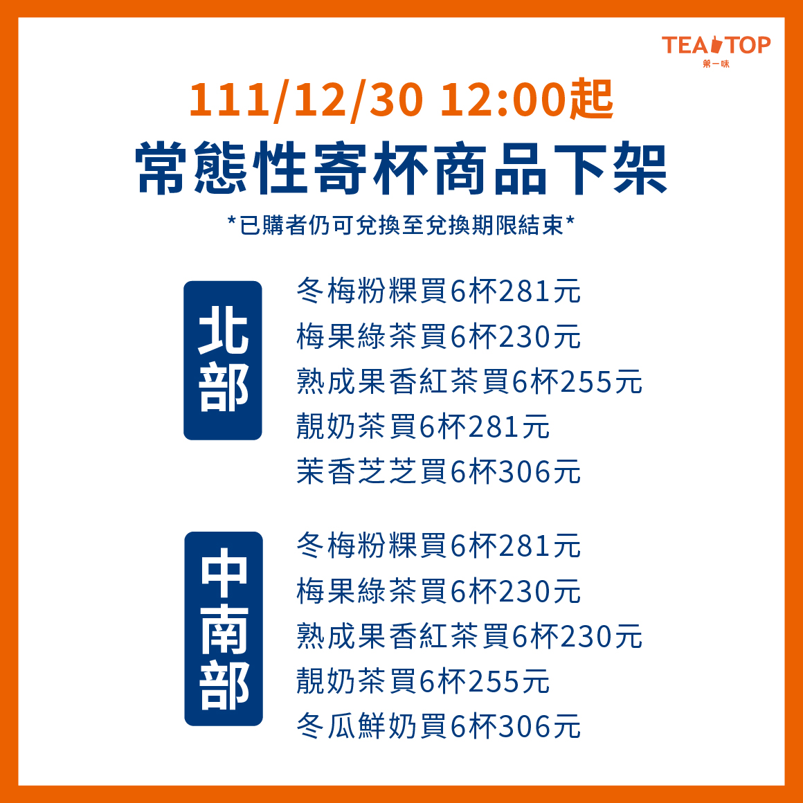 以上寄杯商品2022/12/30 中午12點起停止販售,