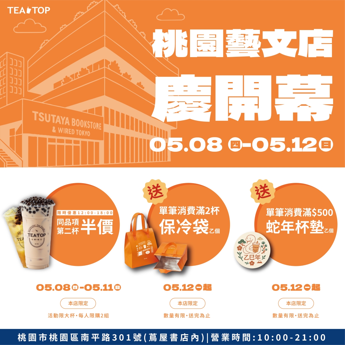 2.單筆消費滿500元再贈TEATOP蛇年限定杯墊乙個(可累贈)