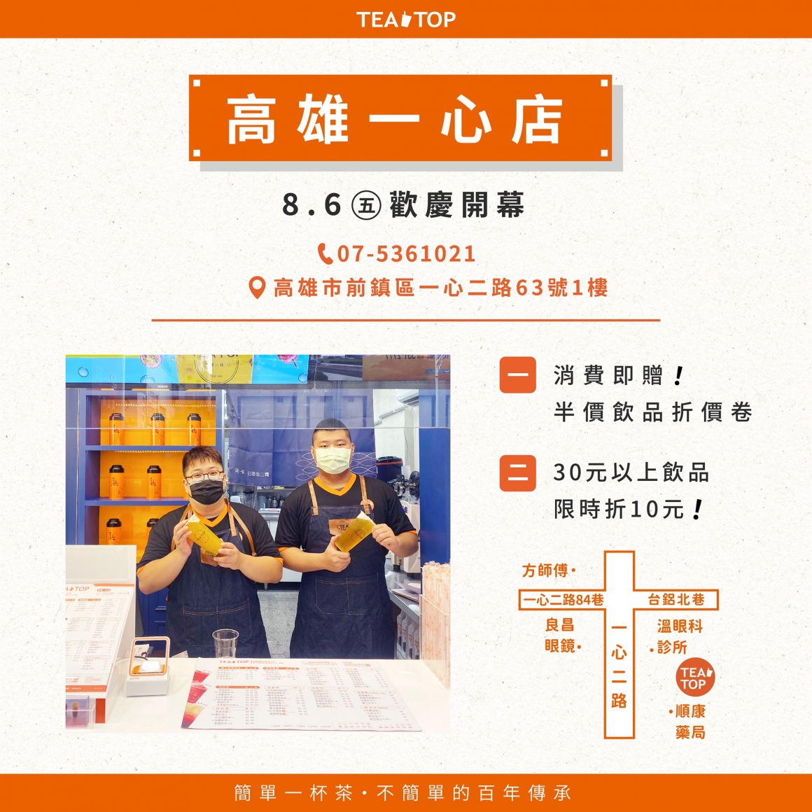 TEA TOP第一味高雄一心店盛大開幕囉!!
