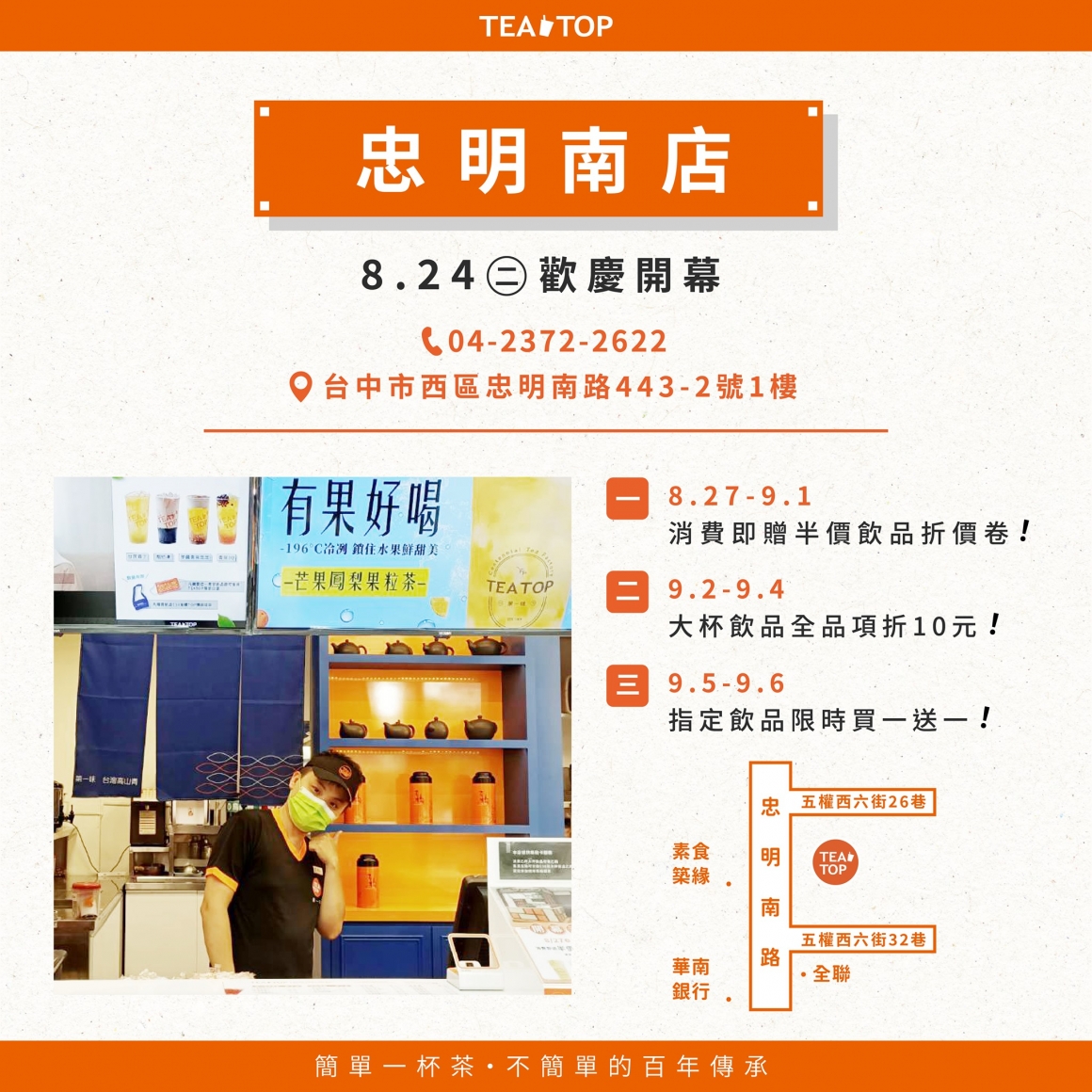 TEA TOP第一味忠明南店盛大開幕囉!!