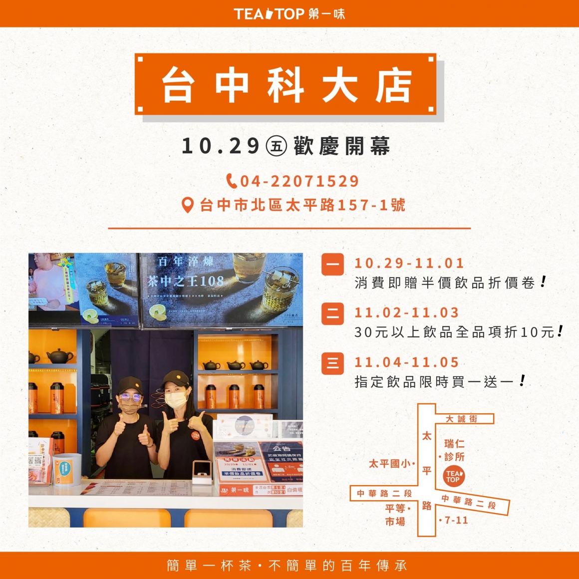 TEA TOP第一味台中科大店盛大開幕囉!!