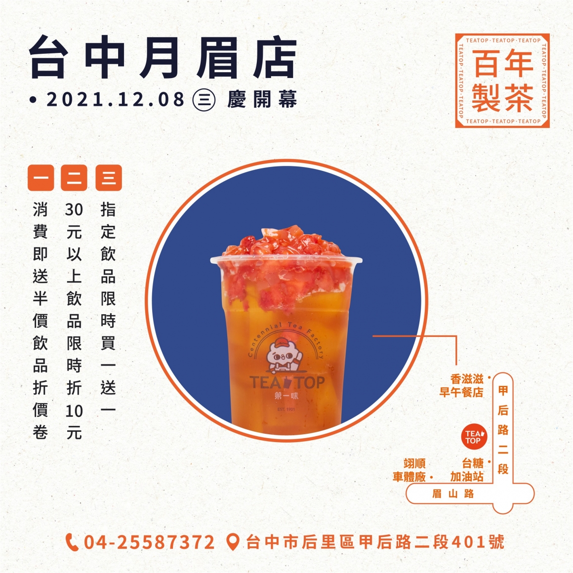 TEA TOP第一味台中月眉店盛大開幕囉!!
