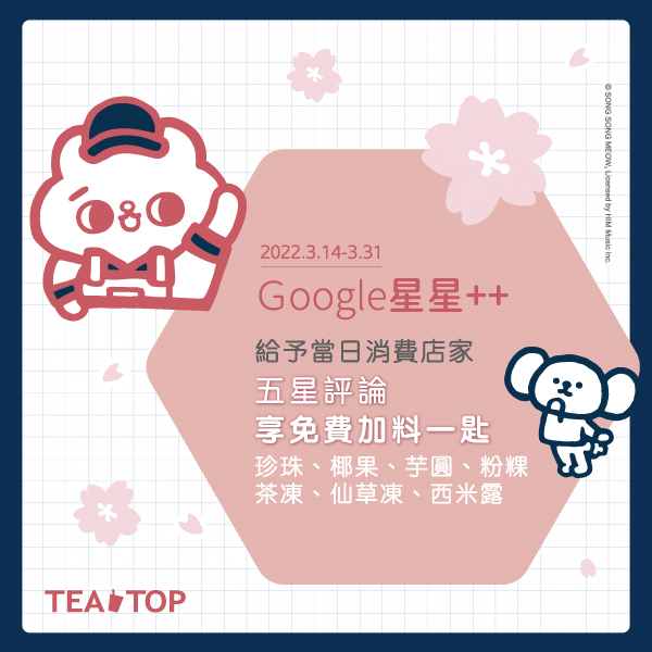 至TEA TOP各門市替店家留下【Google五星評價】