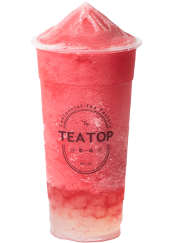 草莓鮮果粒加入甜蜜黑糖製成奶味冰沙
